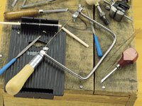 Model makers, wood craftsmen and jewelry hobbyists know how indispensable well balanced saw frames like these can be when it comes to intricate cutting, scroll work, piercing or veneer work. Piercing saws have rounded backs for easy turning when cutting intricate shapes and are used for cutting all metals, bone, plastics, wood and pearls. Our frames have a unique offset styling which permits an unobstructed view of your work. End-screw adjustment gives excellent tension control while special wing nut design holds blade in position. The frame itself is medical grade stainless steel. Model H103 has a 4" throat, and is perfect for larger work. The saw comes with 12 blades.
